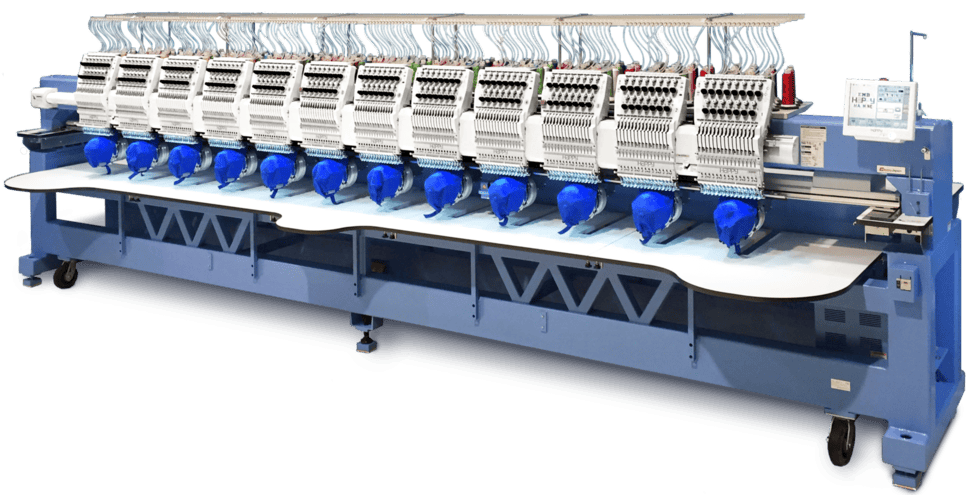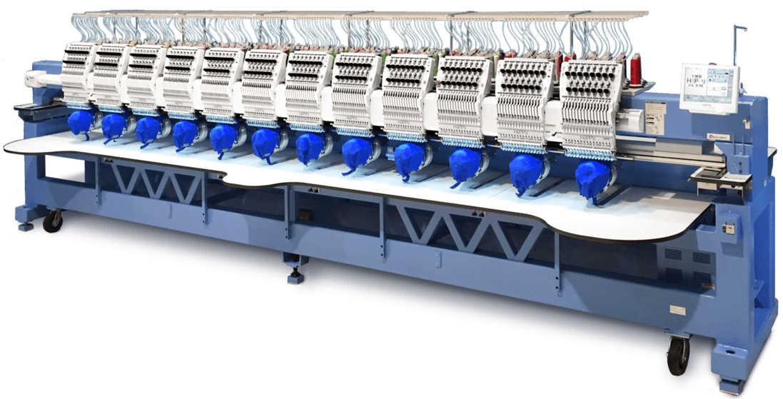 The HCR3-1512 12-head embroidery machine is the flagship of the lineup of commercial multi-head embroidery machines from HappyJapan.