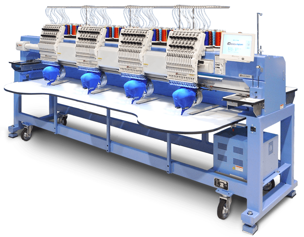 The HCR3-X1504 stretched-field 4-head embroidery machine is built for those who need high production capability and a large sewing field. The sewing field for each of this machine’s 4 heads has been extended to allow embroidery on the included set of 17.25″ x 16.5″ hoops, making large projects such as team applique uniforms, full jacket backs, or even mass-production of patches possible, and much more efficient. The machine is still compatible with conventional field Happy hoops as well. The HCR3-X1504 includes HAPPY’s latest multi-head technology such as servo drive for faster, quieter sewing, more robust construction for greater durability and more-consistent sewing quality on even the most challenging surfaces.